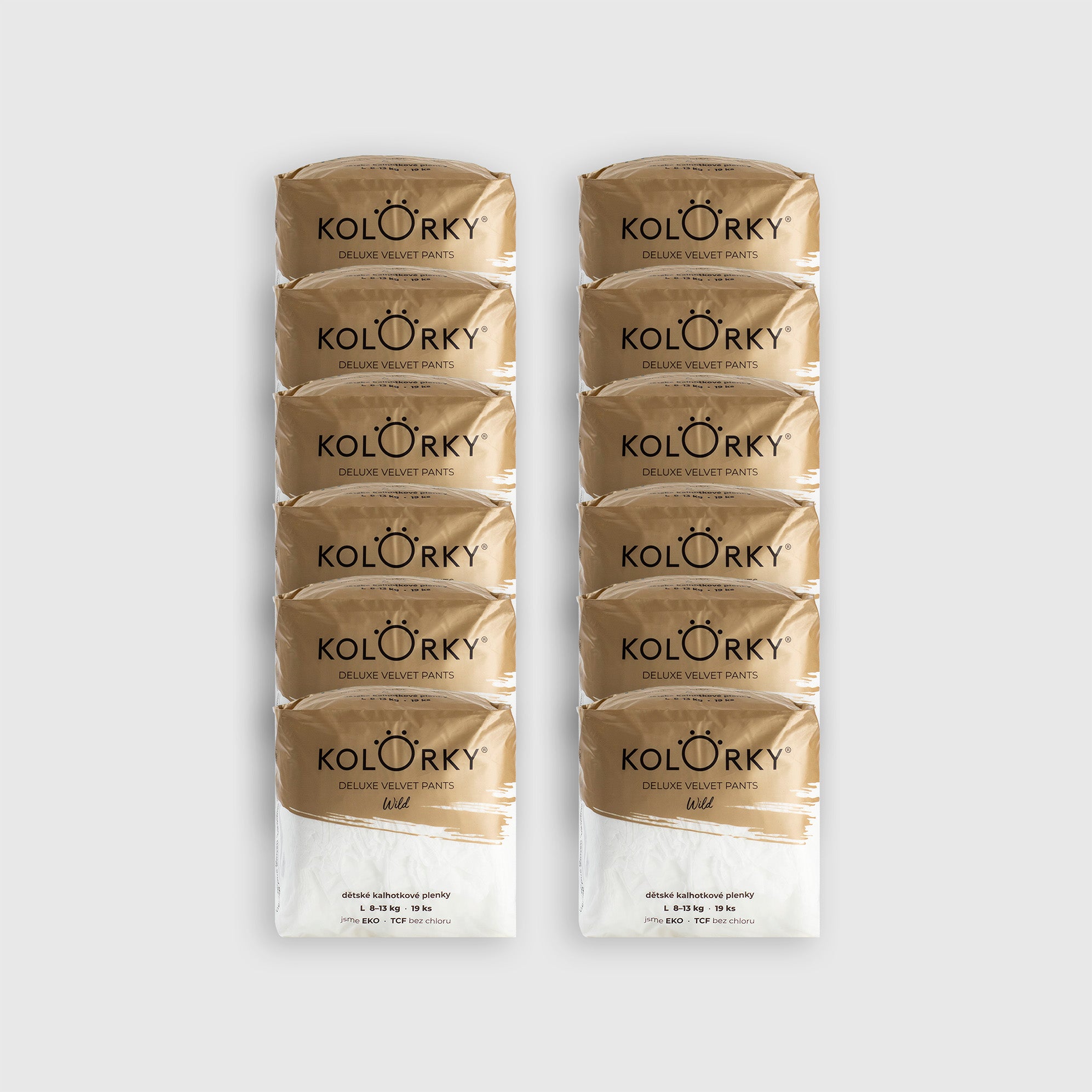 A convenient pack of 12 pcs of our DELUXE VELVET PANTS panty nappies are designed for little savages who don't sit still for a while. The diapers have a velvety surface, elastic side cuffs, elastic waistband and a wetness indicator so you'll know when your predator needs to be changed without a struggle. The elastic waistband can be easily torn at the side for easy changing.