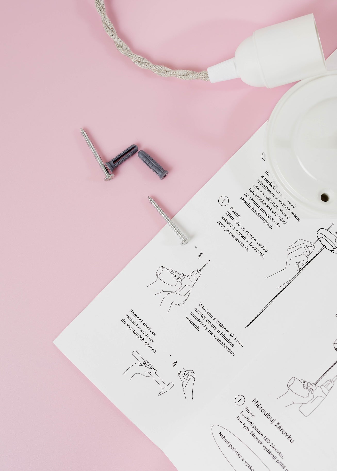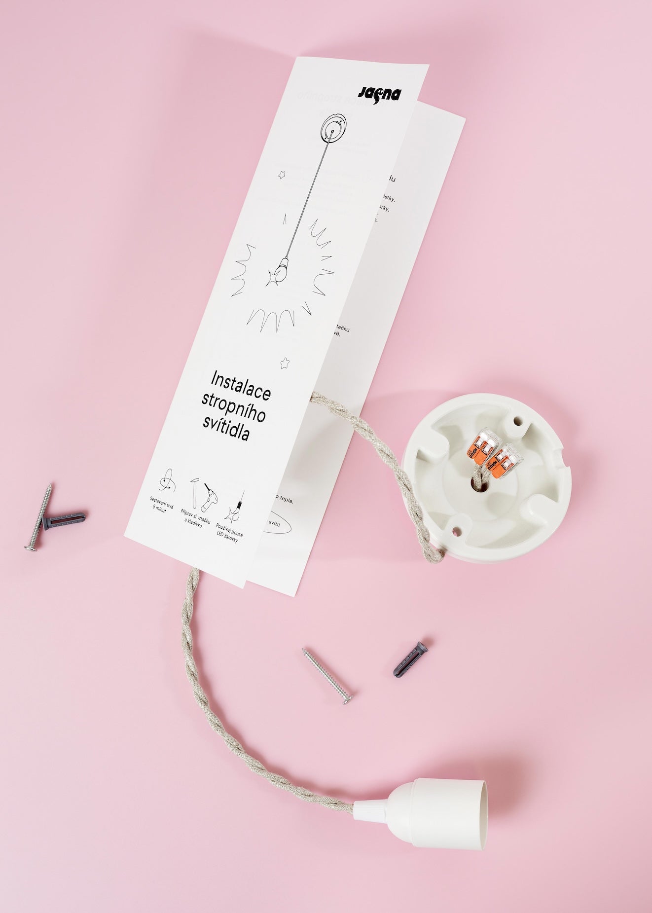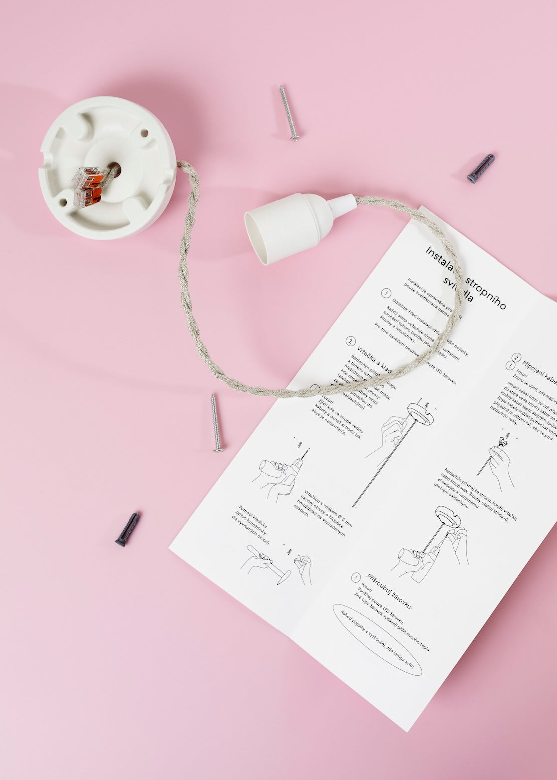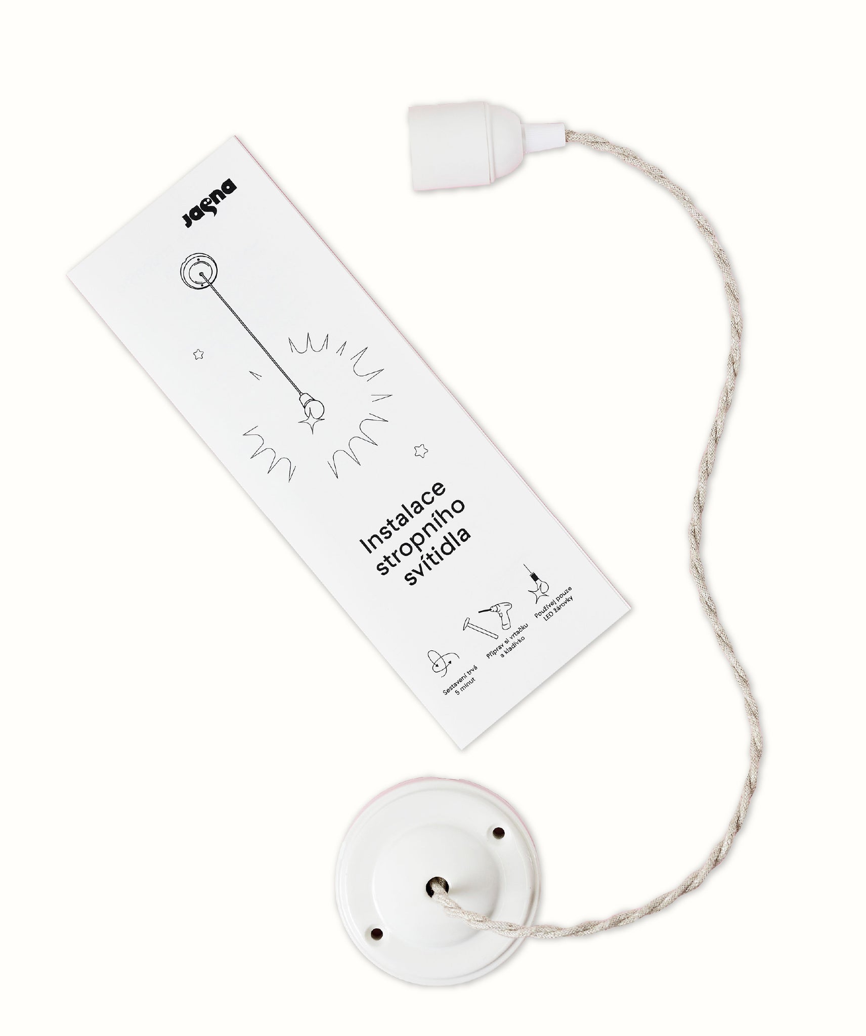 Ceramic ceiling lamp for hanging a paper chandelier with a linen cable.