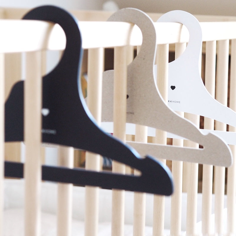 Vješalice su ukrašene nježnim srcem, a možete birati između tri boje kako bi se uskladile s vašim ormarom i modnim komadima vaše djece. Osim elegantnih bijelih vješalica, možete kupiti i prirodne i crne. Velika prednost vješalica je što su debele samo 3 mm, pa ne zauzimaju previše mjesta u ormaru.