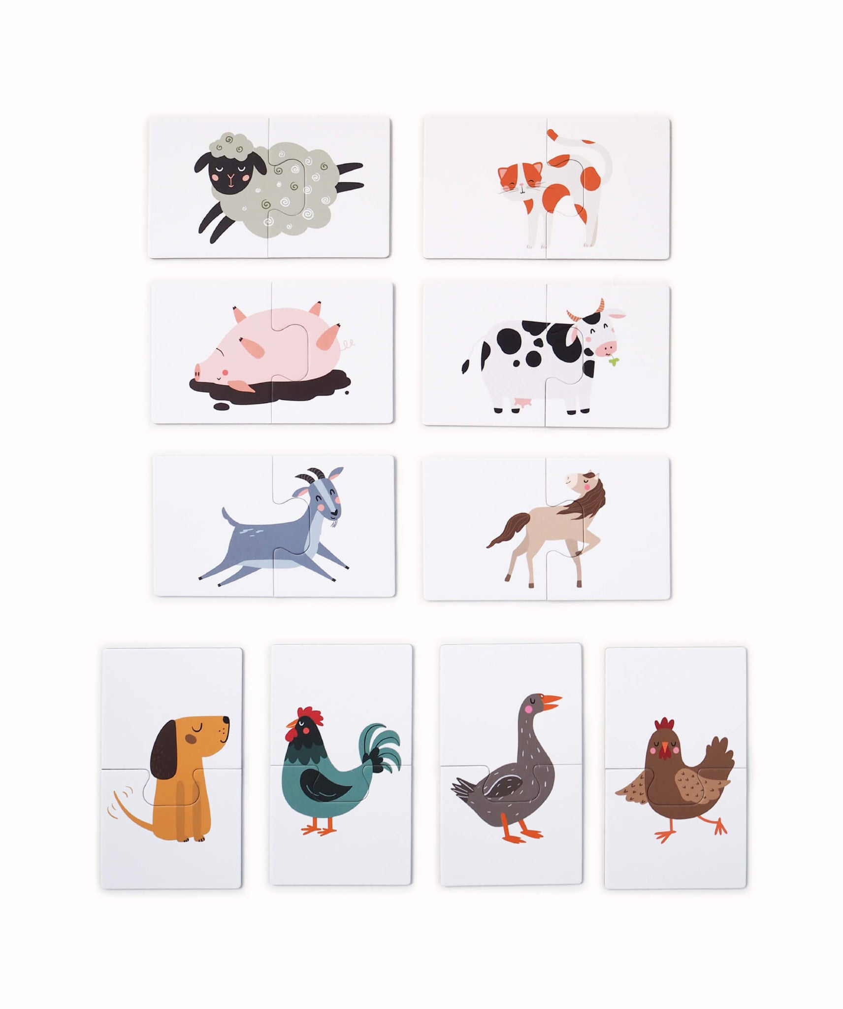 Puzzle for children from 2 years old - contains 10 two-part puzzles with farm animals