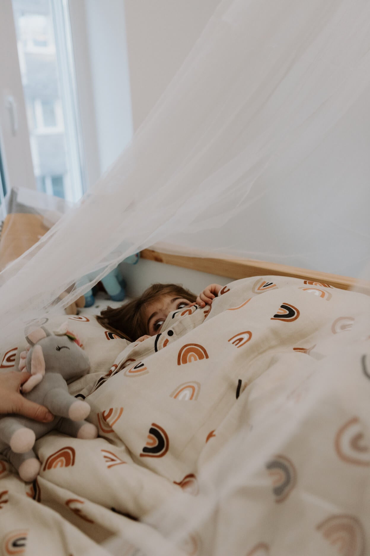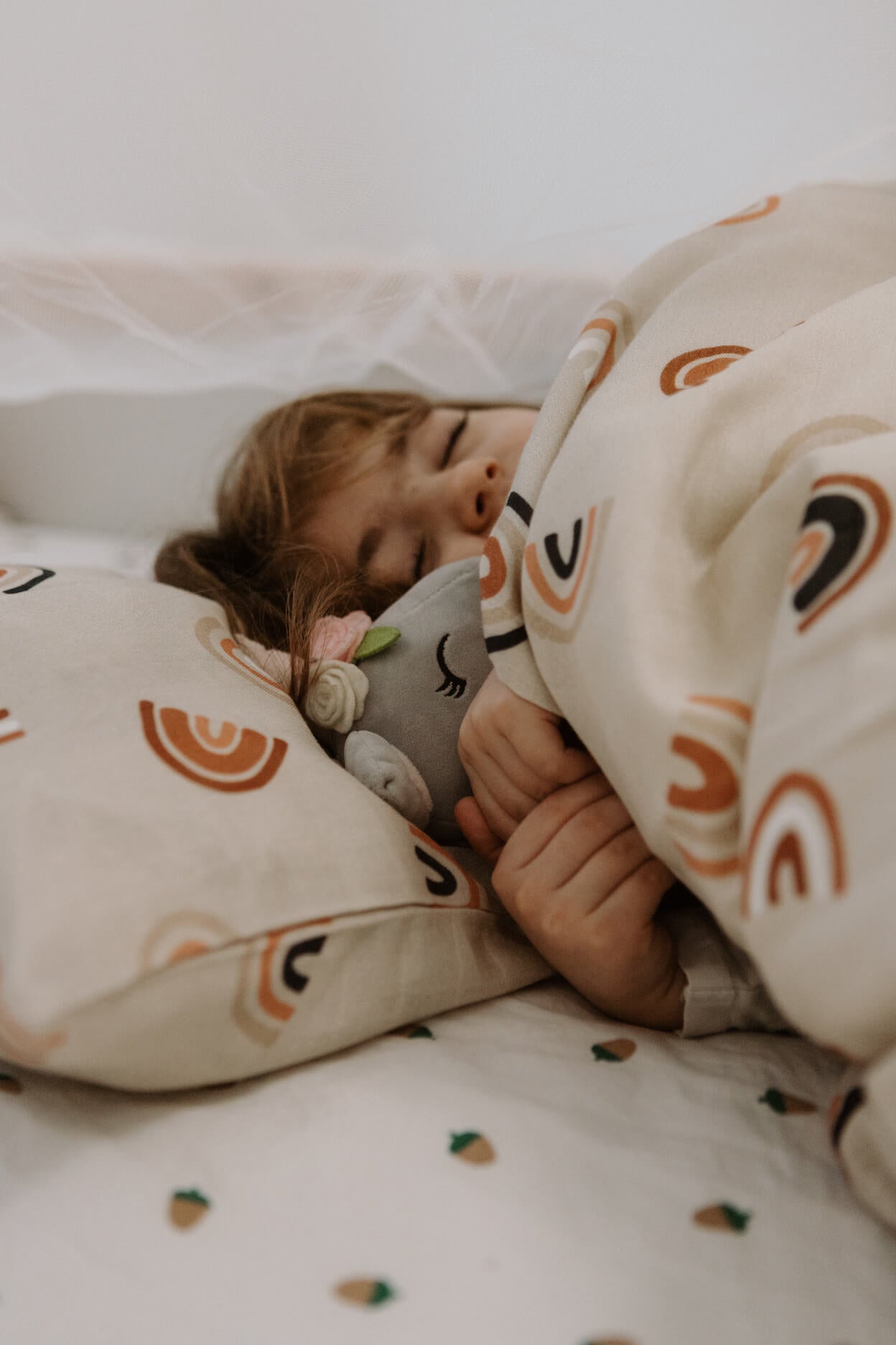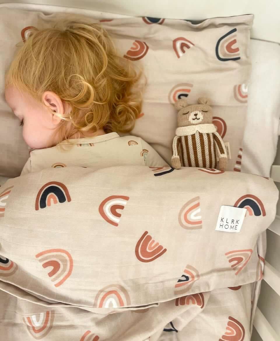 Set de lenjerie pentru pătuțul copilului din mușelin cu certificare GOTS. Mușelinul este un material foarte plăcut și copiii dumneavoastră se vor odihni minunat în el. Lenjeria include o față de pernă cu închidere tip plic și o husă pentru pilotă cu închidere cu capse. Designul minunat cu curcubee este universal și atemporal.
