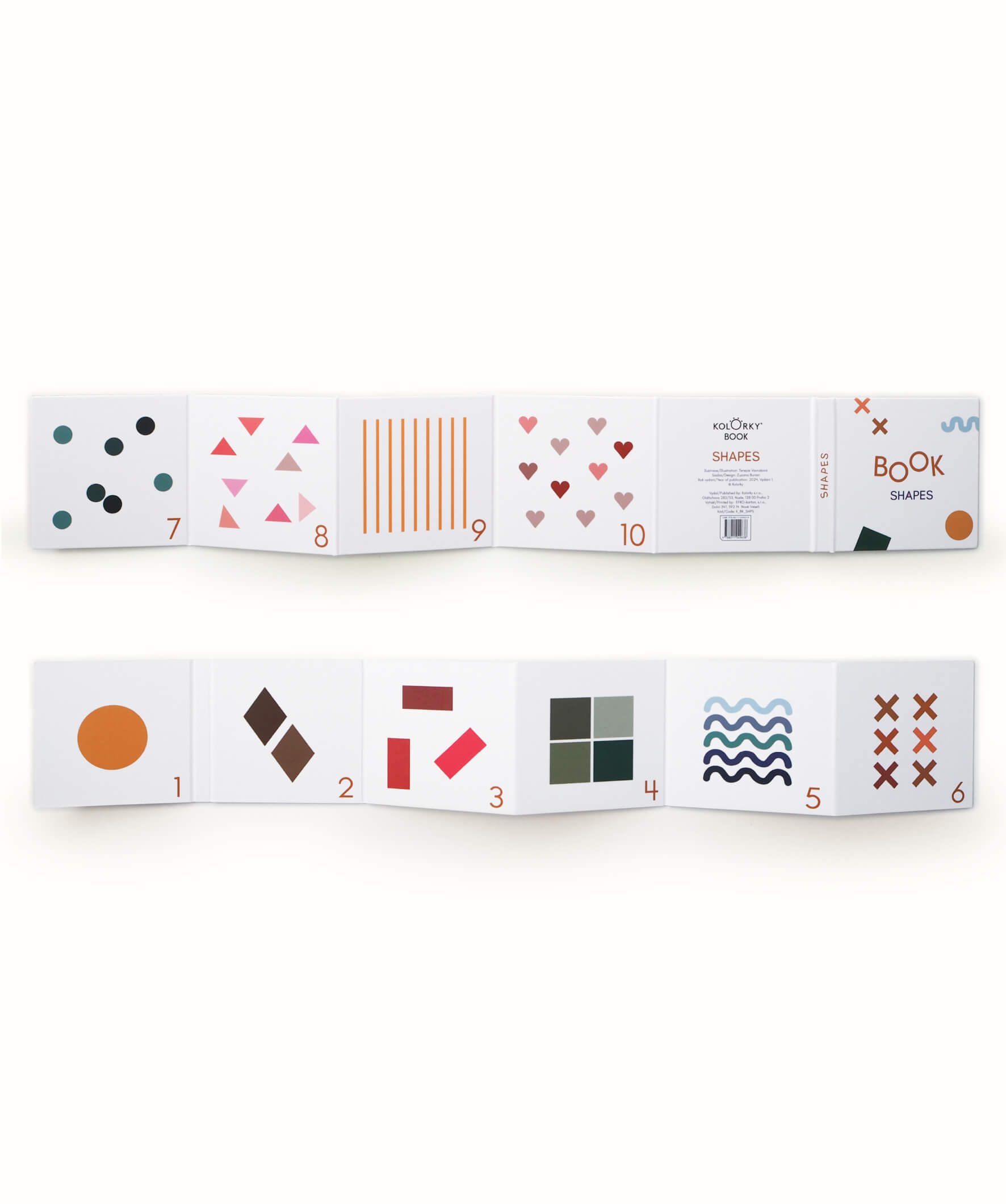 Prima carte pentru cei mai mici, prin care vor învăța formele de bază și numerele. Clasica carte pliabilă este realizată din carton gros și acoperită cu laminat, pentru a rezista manipulării de către micii cititori. Cartea pliabilă conține 10 forme colorate diferit, prin care copiii nu doar că vor învăța formele de bază, dar se pot familiariza și cu recunoașterea culorilor și numărarea.